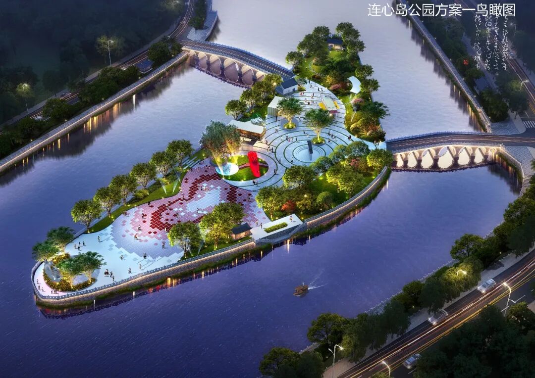 本次改造工程将连心岛分为两大主题区域推动建造:右侧区域以“清凉”为中心主题,规划新建“连心亭”,传递清风正气的清凉文明理念;左边区域则环绕“爱情”主题,选用中国传统园林造景方法,交融现代生活需求与活动运营逻辑,打造许愿广场、七夕广场等特征空间,同步布设“鱼跃龙门”主题雕塑等艺术设备,充沛显示玉林地域文明特征。