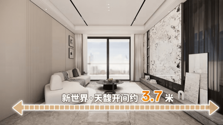 平等面积段的户型,其开间通常在约3.1-3.2米之间,而新国际·天馥的户型开间能做到约3.7米,摆放沙发茶几后,仍可拓荒休闲区,无论是空间舒适度仍是规划力都可谓降维冲击。